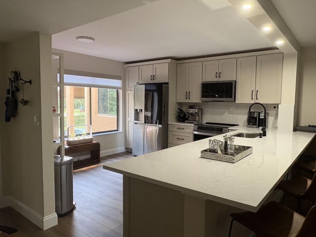 '' TOTALLY REMODELLED'' Spacious Condo with 1380 SF. 55+ community Features : Waterproof NUCORE luxury vinyl planks the entire unit,Kitchen Open concept (Thomasville level II ) all new Doors, Stainless Steel Appliances & Lights. Removed popcorn ceiling and freshly painted. Patio with pond view. Located in a gated community. New Roof 2024 Schedulle to paint exterior this Year, NO ASSESTMENTS! Golf membership available'' NOT'' mandatory
